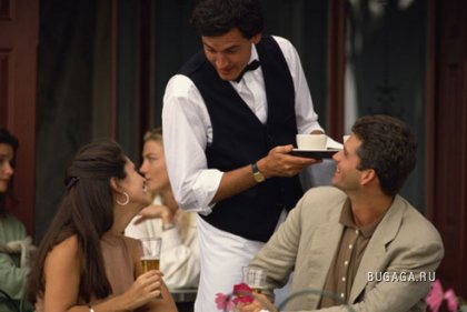20 секретов о которых вам не расскажет официант 1 Если вы отсылаете свой кофе/чай потому что он холодный,никто не будет его переделывать и нагревать,напиток просто перельют в горячую чашку. 2 Во многих заведениях в еду в детских меню добавляется сахар,потому что детям нравится сладкое и они просят вас заказать еще что-то.Например в тесто детской пиццы ложится двойная порция сахара, а в мороженное двойная порция сиропа. 3 Если вы вегетарианец и спросите присутствуют ли в вегетарианских супах растительные бульены,мы скажем что да,даже если это не так,вы не почуствуете разницы. 4 Во многих ресторанах "блюдо дня" состоит из ингридиентов от которых нужно избавиться потому что у них истекает срок годности. 5 Лучше не просите принести вам лимон для напитка.Во многих заведениях его все трогают и редко когда моют.Достаточно просто снять этикетку с лимона,порезать и добавить вам в чай. 6 Если (в сети фаст фуда) вы спросите сколько калорий в вашем блюде,официант вам не ответит так как не имеет на это права.Все что вам скажут это посмотрите на нашем сайте. 7 Если с вашей едой ничего и не сделают за ваши конфликты с официантом то могут сделать с банкнотами или кредиткой.Если официанту не понравится то,как вы с ним разговариваете он постарается вас унизить перед вашим партнером заявив о том,что ваша кредитка не подходит или банкноты выглядят сомнительно. 8 Обезжиреное/низкокалорийное молоко/сметана практически всегда являются обычными.Просто это не практично держать разные виды если мало кто на это обращает внимание. 9 Если в меню есть недорогие салаты с домашними или фирменными заправками - то это скорее всего обычный майонез с добавлением сыра или зелени. 10 Хотите напрячь официанта? Попросите его принести вам чай.Гораздо легче налить вам сок, чем нагревать воду,искать лимоны,мед и сахар,нести горячий чайничек а так же чашку и ложку.Слишком много работы за маленькую награду. 11 Во многих ресторанах чайвые уже включены в счет.Поэтому если вам не понравился официант вы все равно поощряете его и тех кто сделал этот вечер для вас "незабываемым". 12 Во многих заведениях(особенно если это сеть заведений) даже при безупречной репутации,яичница болтунья будет сделана из порошка,так же как и картошка фри из полуфабрикатов. 13 Многие люди думают ,что если еду долго приносят - это вина официанта.Иногда это вина кухни из-за того, что много заказов или потому ,что вы попросили хорошо прожаренное мясо. 14 Если у вас за столом возникла ссора и вы пытаетесь ее скрыть,то не удивляйтесь неожиданно нашедшим официантам которым нужно поменять салфетки,перечницу,протереть стол,им тоже интересно послушать. 15 К постоянным клиентам всегда отношение лучше чем к случайным посетителям,например ваши бокалы станут чище а блюда будут приносить быстрее. 16 Если вы хотите хорошего сервиса - избегайте больших праздником например День Святого Валентина,8 марта, так как официанты в это время всегда в запарке и не смогут обеспечить вам качественного обслуживания как в другие дни.Да и потом в такие праздники у заведений появляется специальное праздничное меню,в которм цены немного завышены. 17 Если вы пришли в заведение с ребенком то потрудитесь сделать заказ за него(если он стеснительный) так как официанту надоедает ждать долгое время пока ваш ребенок все же осмелится назвать то,что он хо